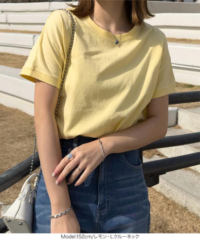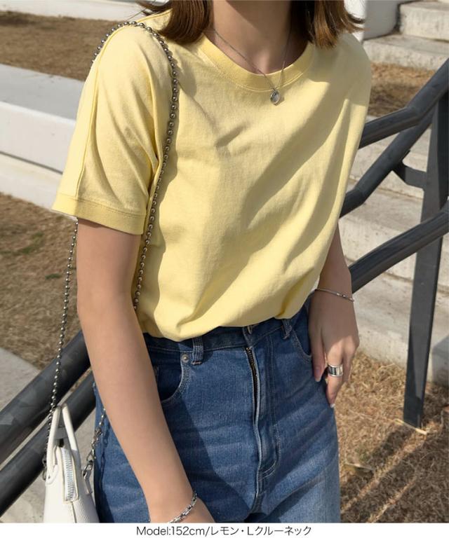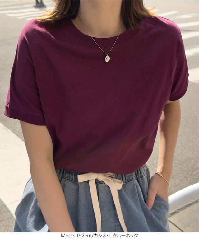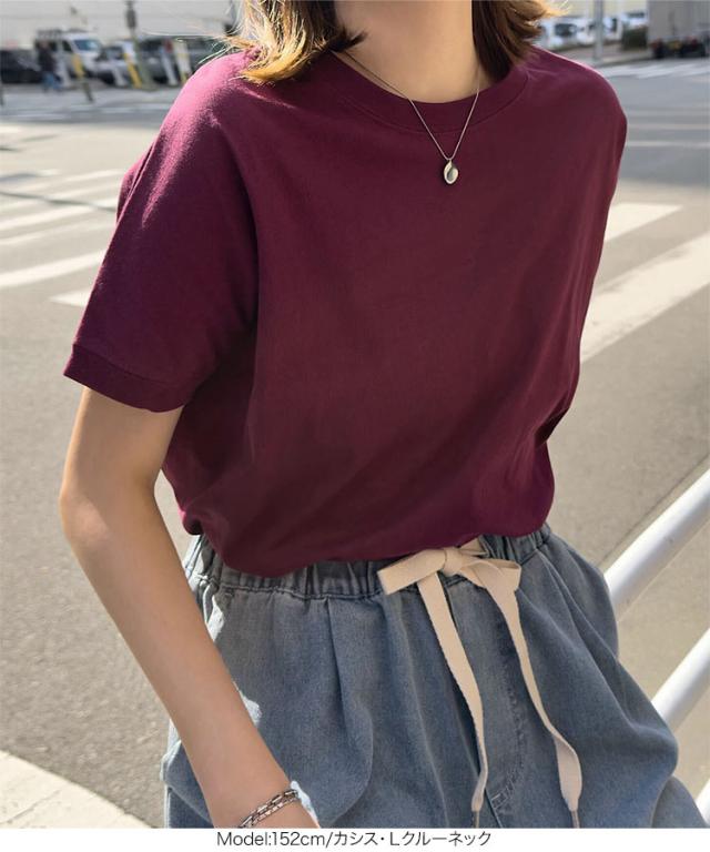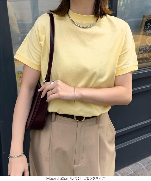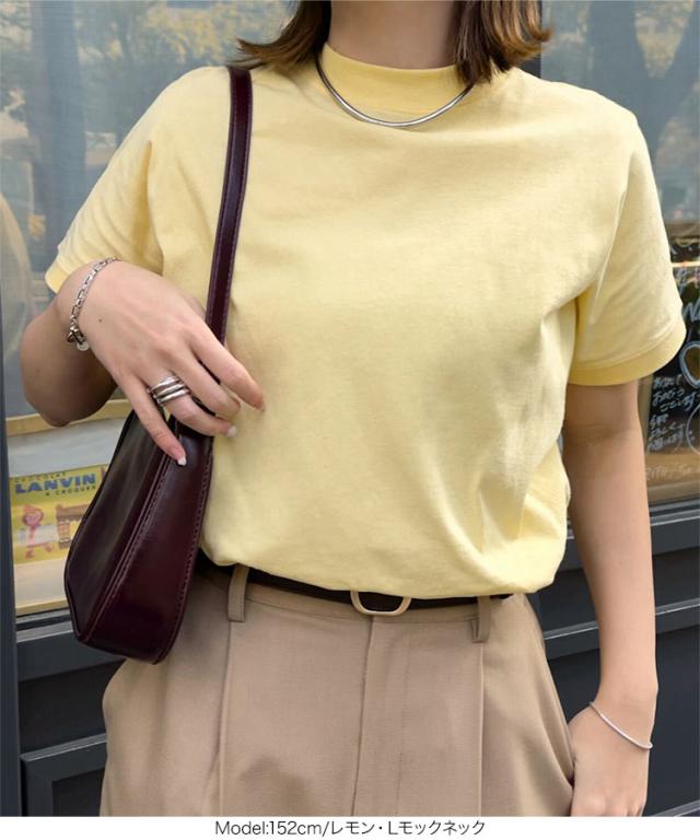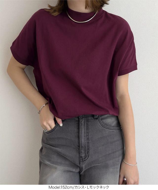 選べる2ネックタイプ × 3サイズ コットン100%Tシャツ C4819 入荷済 レディース トップス ハイネック コットン 綿 洗濯 きれいめ おしゃれ ゆったり 体型カバー モックネック クルーネック M L LL 半袖 無地
