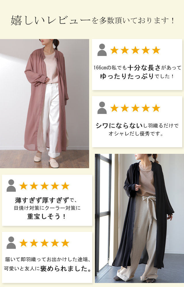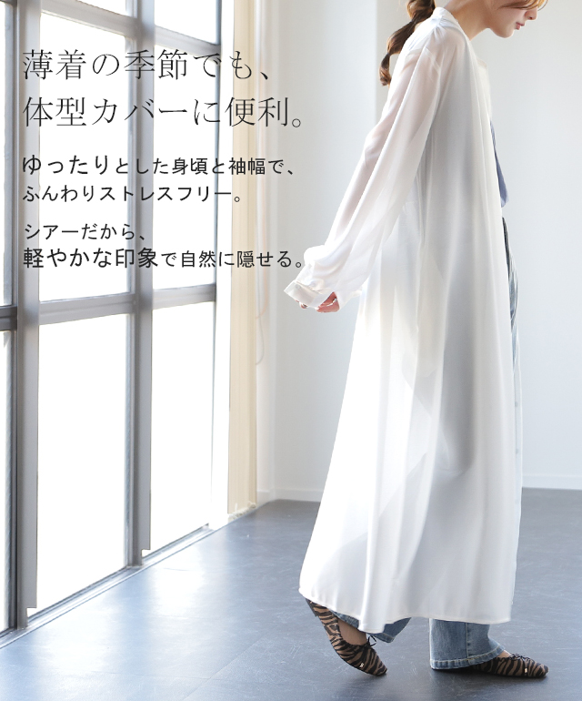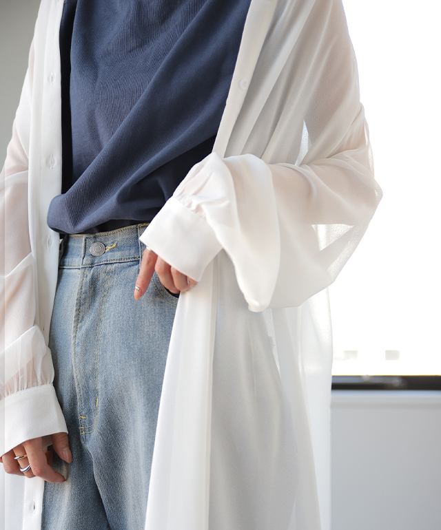 透け感のあるサラッと生地で冷房・UV対策にも羽織としても活躍します。