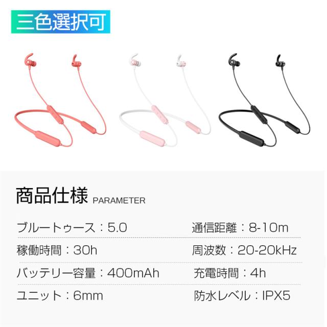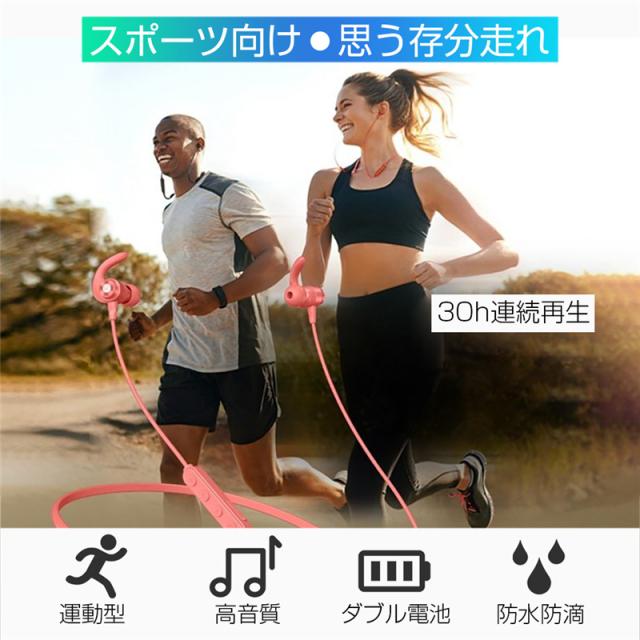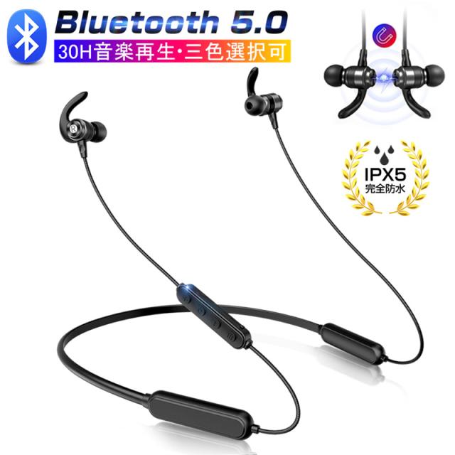 ブルートゥースイヤホン ワイヤレスイヤホン Bluetooth 5.0 高音質 IPX5防水 ネックバンド式 ヘッドセット マイク内蔵 iPhone&Android対応 【PL保険加入済み製品・安心】
