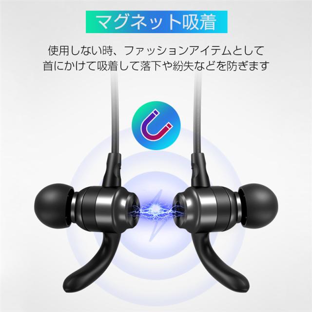 1、イヤホンヘッドにマグネットが内蔵しているため、使用しない時は、くっつけて首にかけて便利