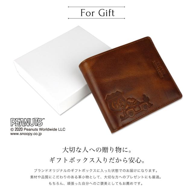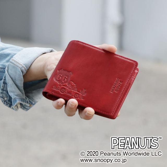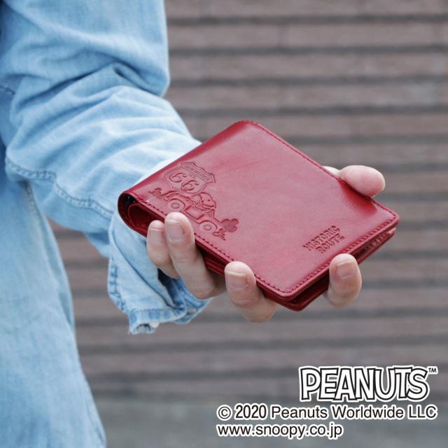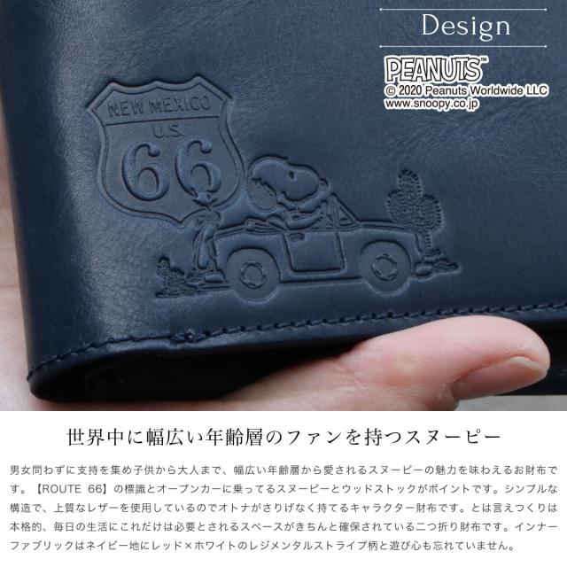 スヌーピー 財布 二つ折り財布 PEANUTS HISTORIC ROUTE ROUTE66 本革 牛革 日本製