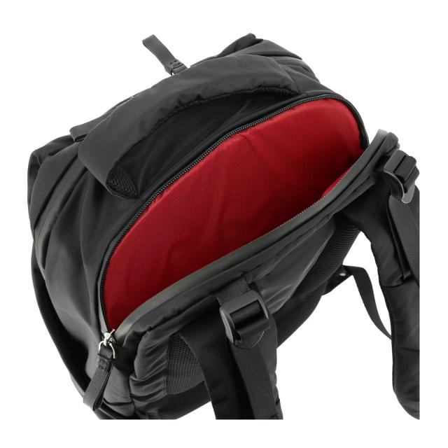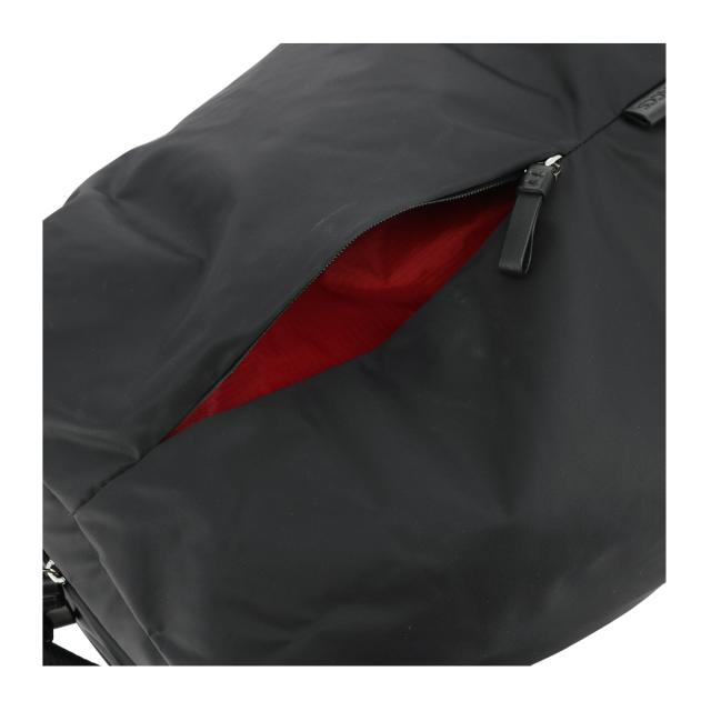 POINT(1) 多彩な収納スペース メインの収納スペースの内装にはメッシュのポケットを、背面側にPCなどA4サイズが曲げずに収納できるスリーブ、 デザインの邪魔にならないようなスマートなポケットを前面、底面、サイドに配置。