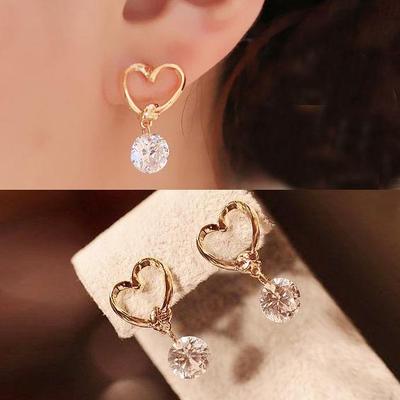 ハート スタッド ピアス ★ レディース ジュエリー ピアス スワロフスキー 耳飾り イヤリング アクセサリー 金 B19-7