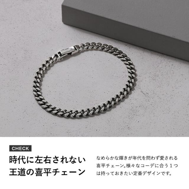 喜平チェーン ブレスレット メンズ シルバー925 2面カット 細め 5mm幅 シンプル おしゃれ シルバーブレスレット シルバーアクセサリー メンズブレスレット 男性 bab-3611