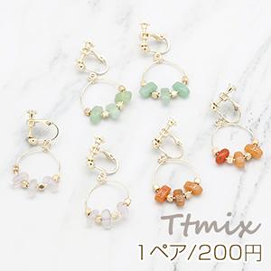 天然石イヤリング 4mm玉 ネジバネ式イヤリング フープ【1ペア】