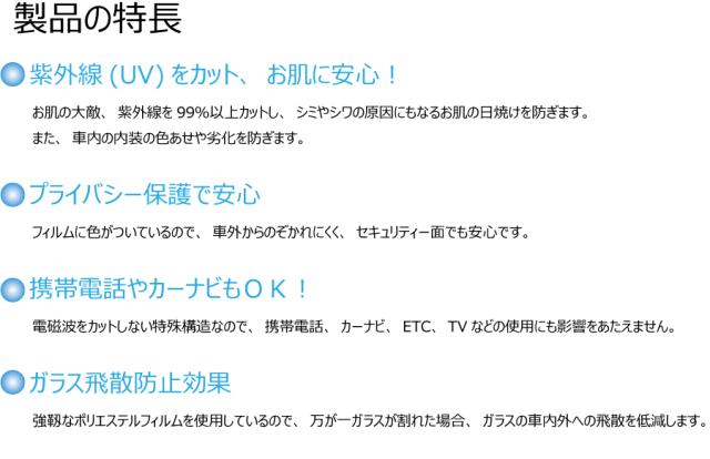 フィルムに色がついているので、車外からのぞかれにくく、セキュリティー面でも安心です。