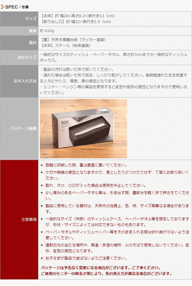 ・一般的なサイズ(市販)のティッシュケース、ペーパータオル等を想定しておりますが、形状・サイズによっては対応できないものもあります。