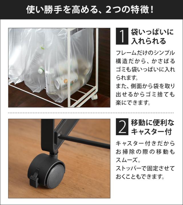 底面が棚のようになっているので、袋のストックを置くのにも便利!掛けたゴミ袋が床に擦れるのも防いでくれます。