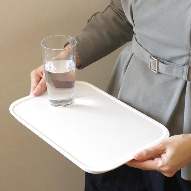 スリムな形状のトレーは普段使いにも便利です。グラスやマグカップと一緒におやつをのせたり、カトラリーをまとめて運んだりと様々なシーンでお使いいただけます。