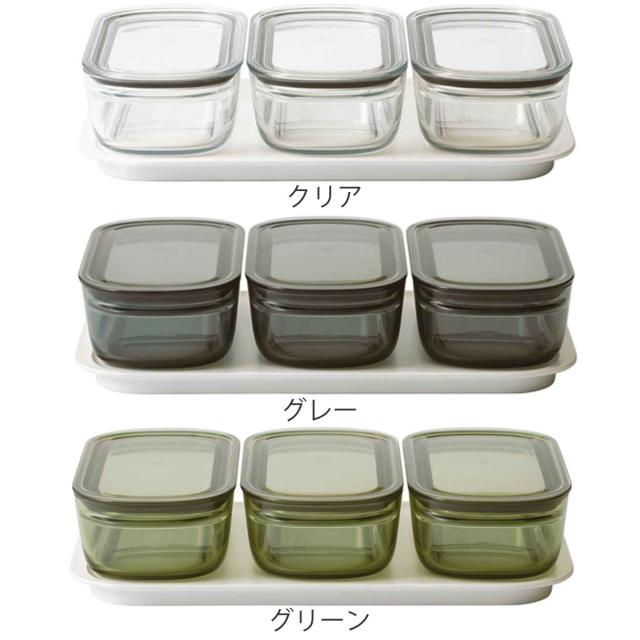 | 内容量 | 保存容器Mサイズ:同色3個入り 付属品:収納トレーLサイズ |