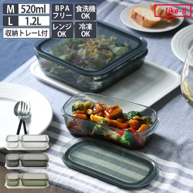 調理ができる保存容器 M1個+L1個+トレーL