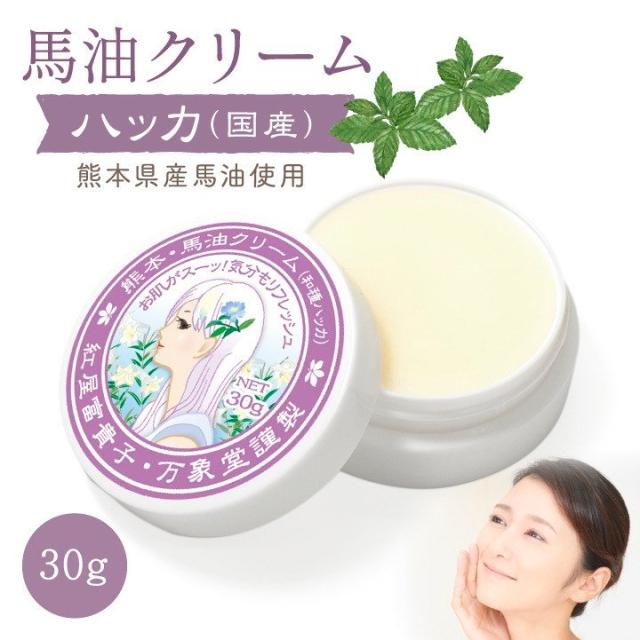 馬油クリーム 30g ハッカ ハンドクリーム キャララベル 敏感肌 スキンケア 手作り 熊本 阿蘇 精油 保湿 手荒れ 効能 効果 無添加 国産 送料無料 薄荷 ミント