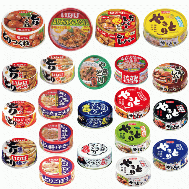 缶詰四大メーカー(ホテイフーズ、宝幸、いなば食品、極洋食品)の焼き鳥だけの缶詰セットをご用意しました。缶を開封し、レンチンか湯煎して、おつまみに食べるのもOK。