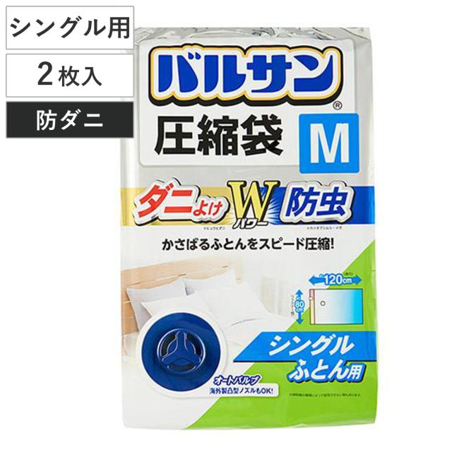 バルサン ふとん圧縮袋 防ダニ M 2枚入 ( ダニよけ圧縮袋 防虫圧縮袋 圧縮袋 布団 防虫 オートバルブ 閉め忘れ防止 ファスナー 縦型サイズ 海外製凸型ノズル対応 2つ折り ダニ対策 )