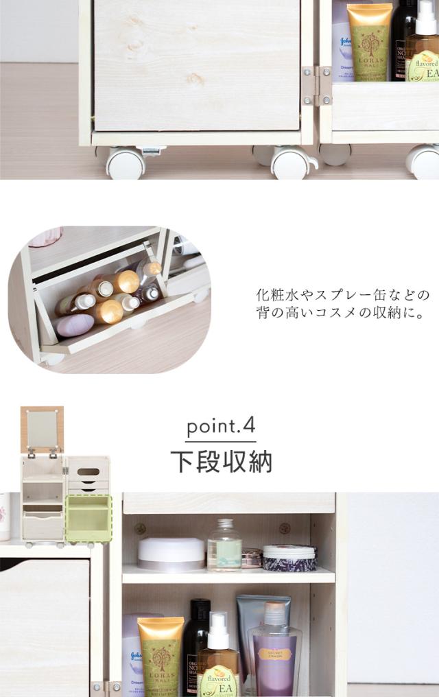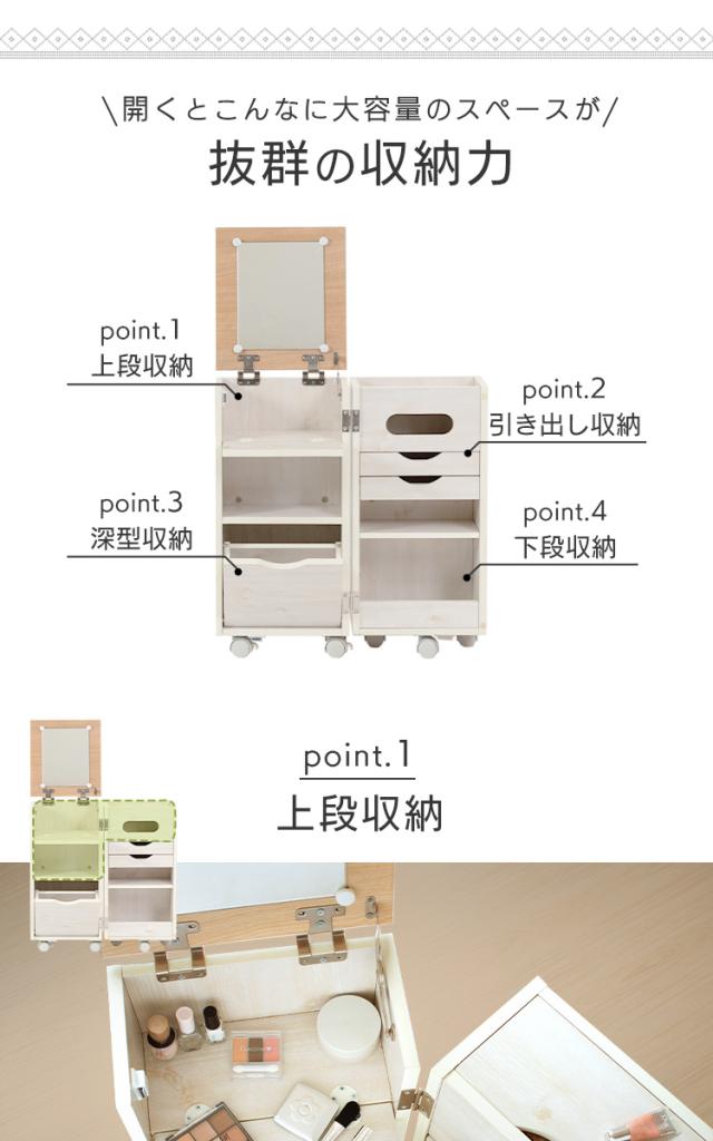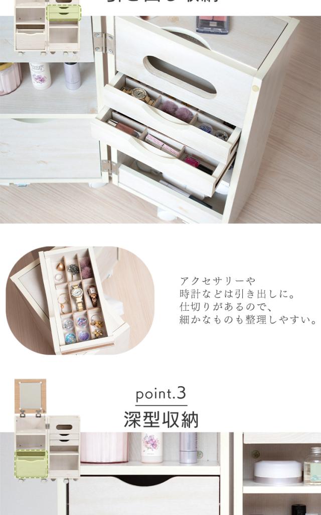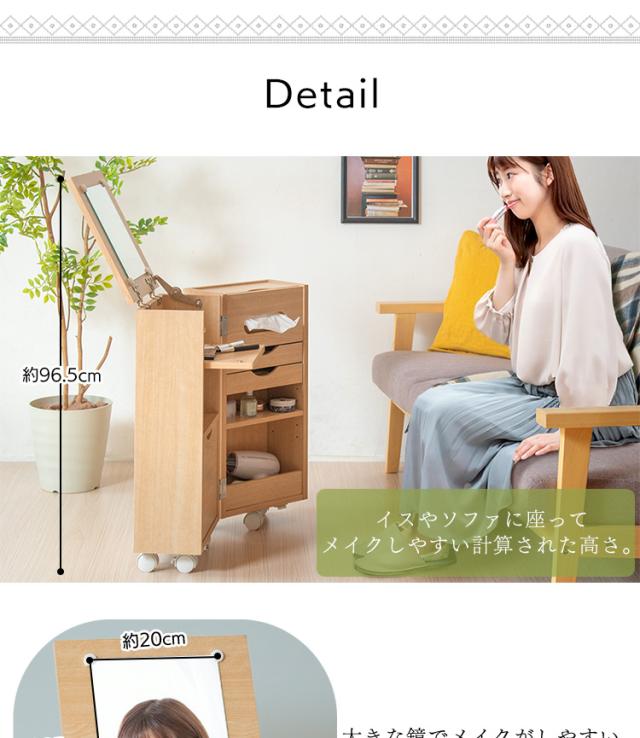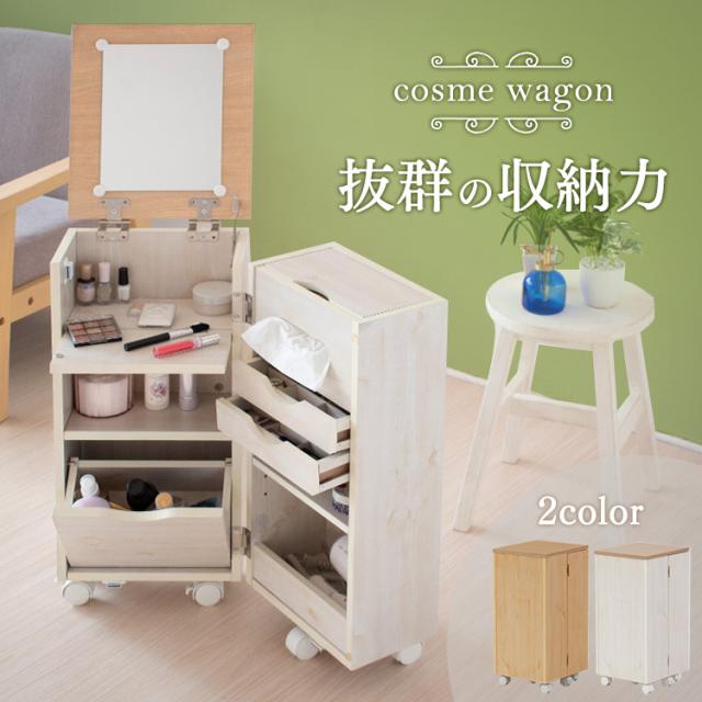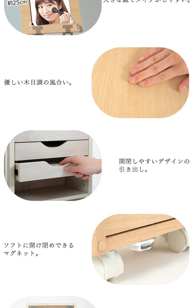 ドレッサー 化粧台 ナチュラル&ホワイト ナチュラル 収納 インテリア シンプル ドレッサー 鏡台 引出し ワゴン 収納 化粧品 コスメ メイク道具 コスメワゴン キャスター付 送料無料 【int】