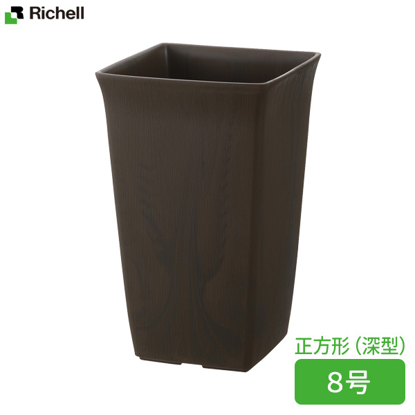 リッチェル 植木鉢 フォーレ スクエアポット 8号 ダークブラウン(DB) | 鉢 ポット プランター 角型 深型 おしゃれ 四角 日本製 園芸鉢 ガーデニング 木目調 ナチュラル プラスチック 観葉植物 小さめ草花 通気性 排水性 鉢植え 8号