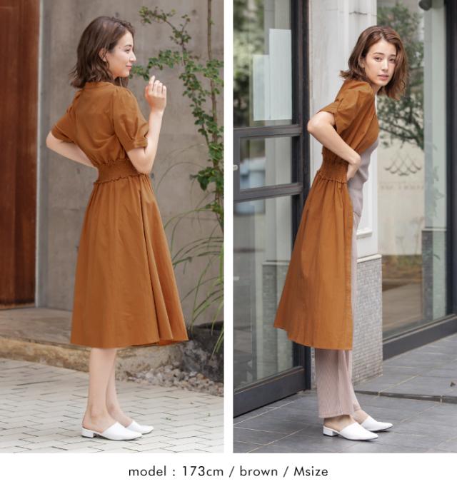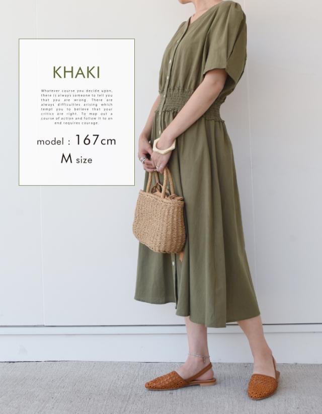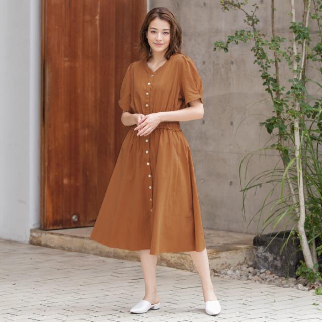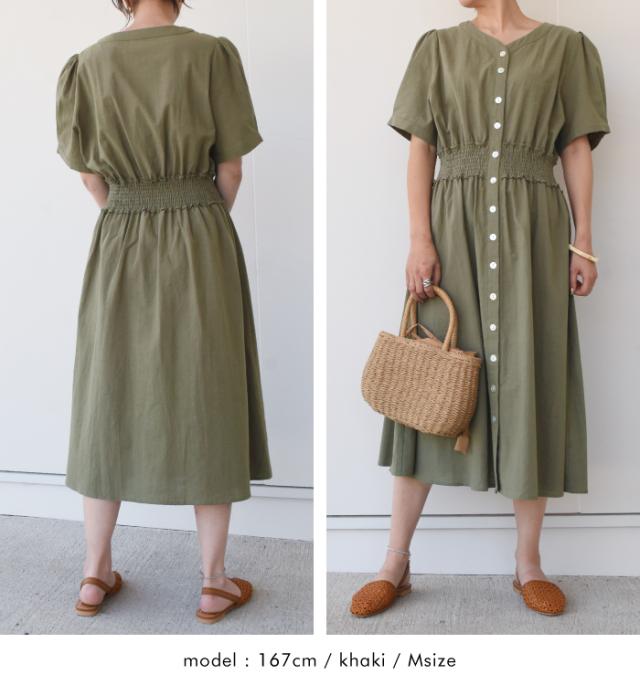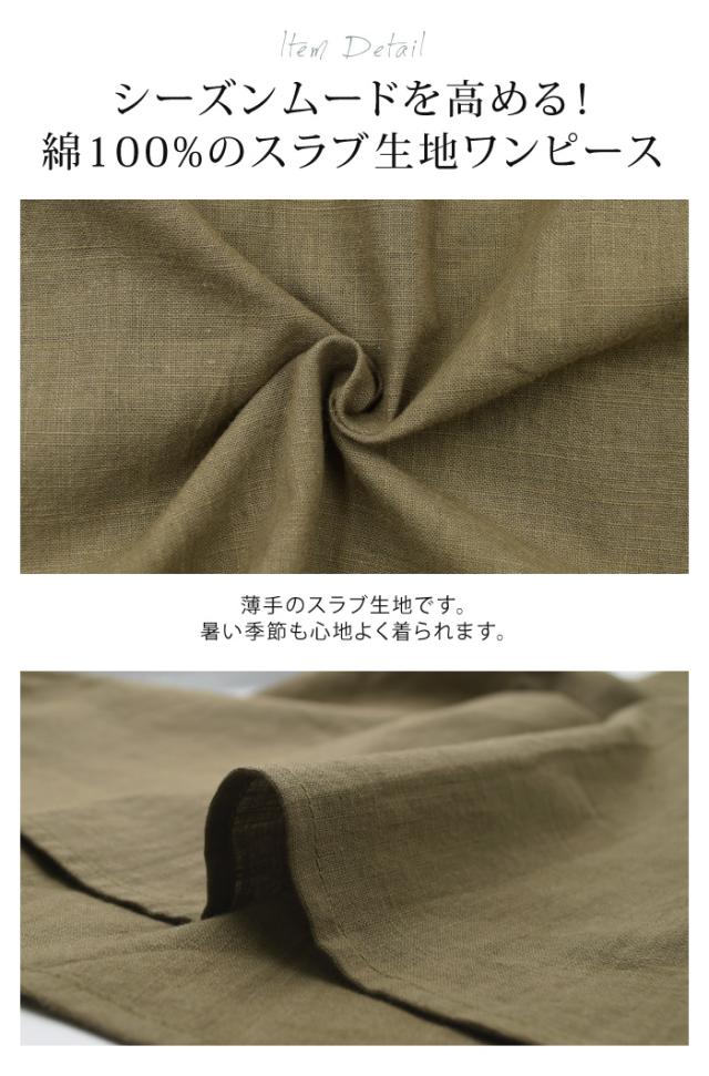 フロントのシェルボタンとスラブ生地がナチュラルな2wayワンピ。