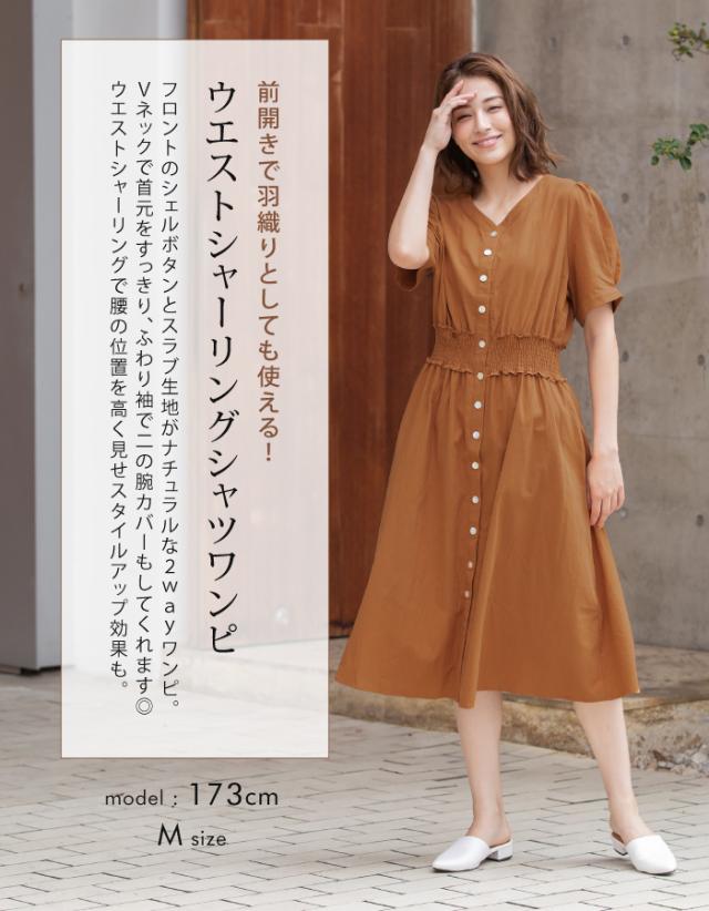 前開きで羽織りとしても使える!ウエストシャーリングシャツワンピース。