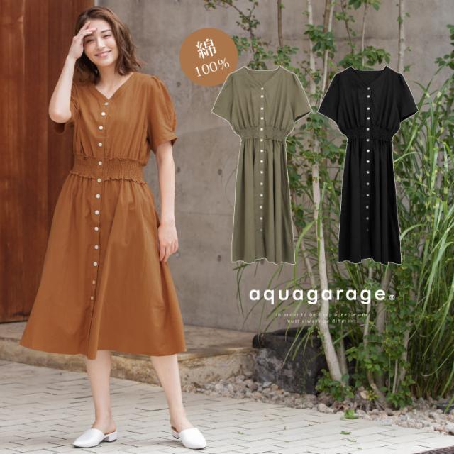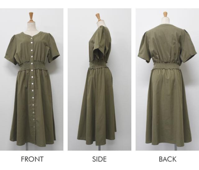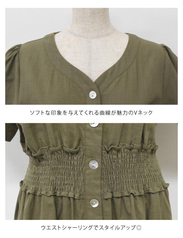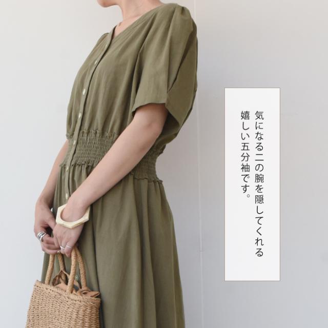ウエストシャーリングシャツワンピース レディース 春 夏 半袖 五分袖