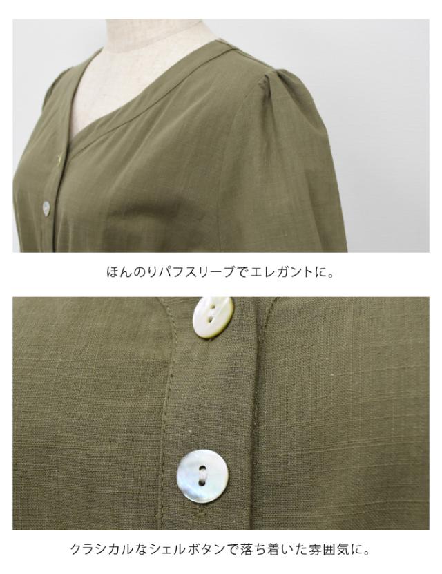 Vネックで首元をすっきり、ふわり袖で二の腕カバーもしてくれます。
