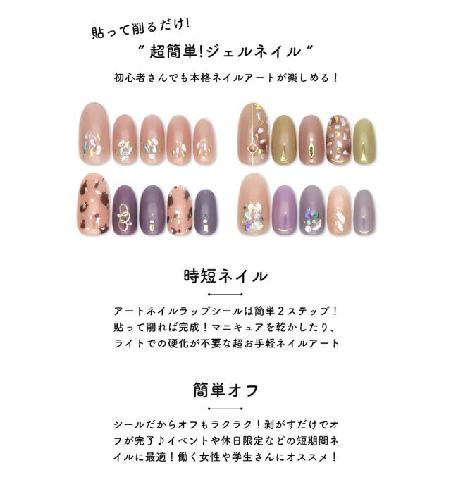 貼るだけでジェルネイル完成 ジェルネイルシール サロン級デザイン全15種 ネイルラップ ハンド おうち時間 フットネイル