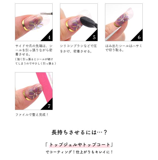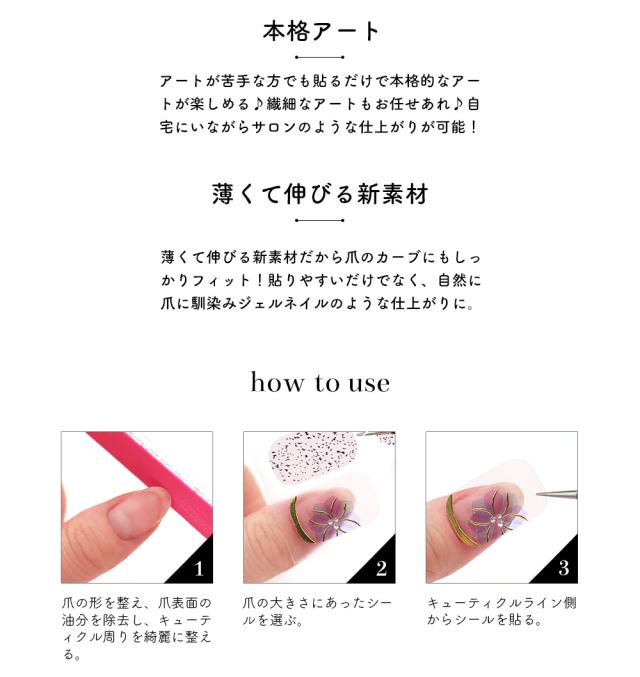 - 柄も可愛く、不器用でも貼るだけなので簡単に出来てとてもお手軽でした。 仕事柄ネイルできないので貼るだけ剥がすだけはとても使い勝手が良かったです!