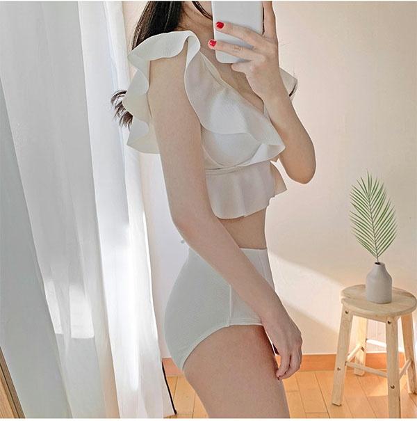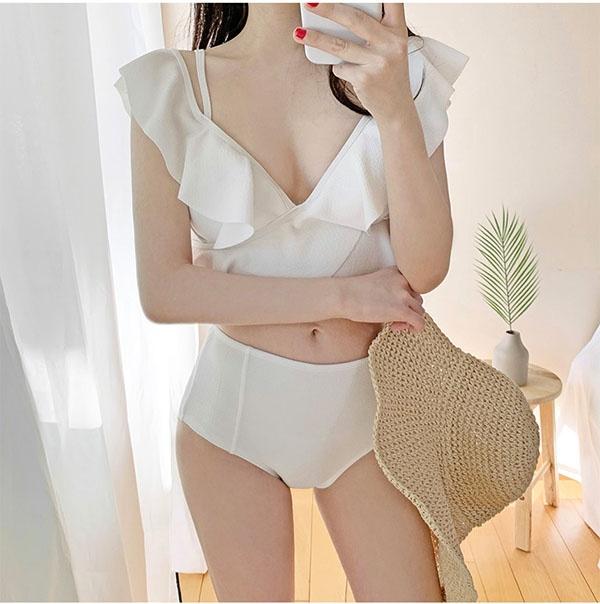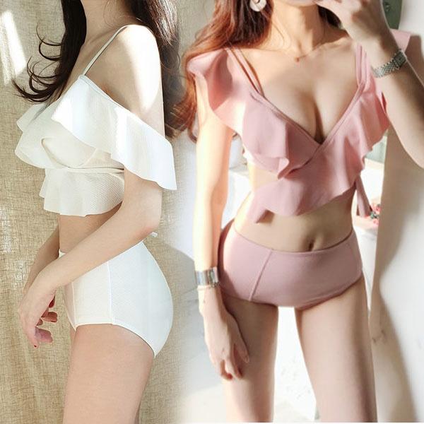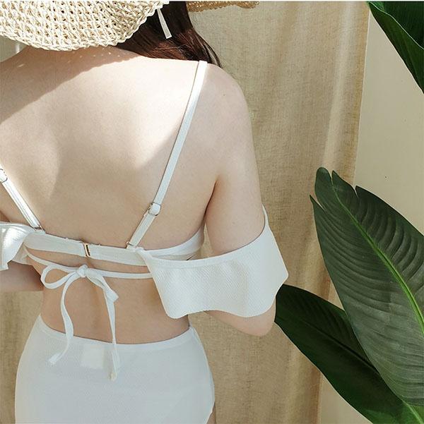 【M/L/2L】ビキニ 水着 レディース セクシー 肩出し 2点セット 上下セット 可愛い 小胸 プチ胸 海 ビーチ 沖縄 プール 温泉水着 パッド ピンク ホワイト df026t2t2zb