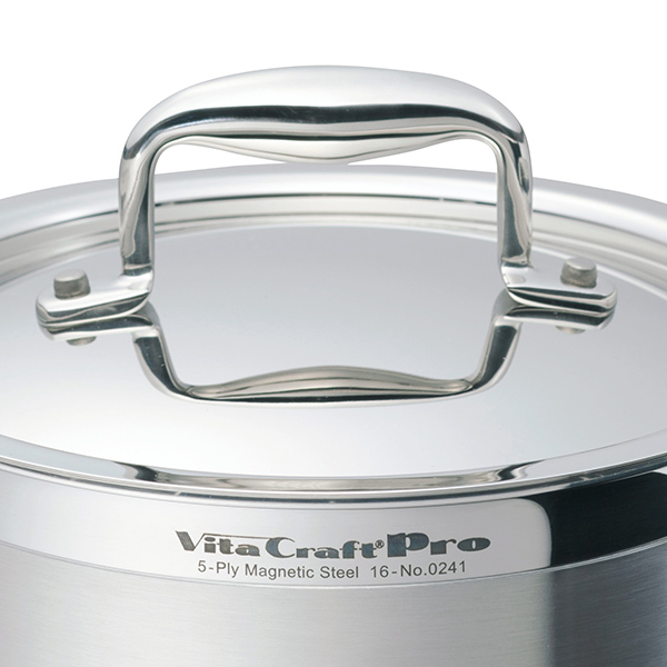 握りやすさを追求し、頑丈で高級感のあるステンレスキャスト製のハンドルです。ハンドルはなかなか熱くなりにくく、厨房での高火力や強い衝撃にも長年耐えられるよう、ビタクラフト史上もっとも頑丈に設計されています。