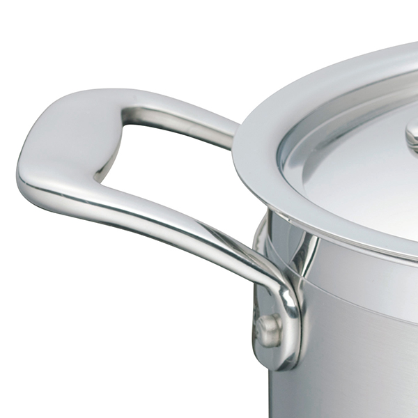 汁物や煮物など長時間煮込む料理や、少量の調理に最適なお手頃サイズの18cmの両手鍋です。保温力や省エネにも優れています。オールステンレスで清潔に保ちやすいです。