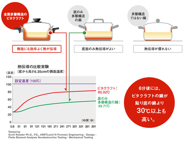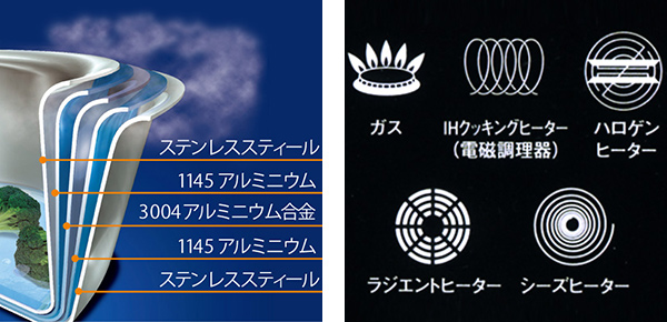 全面5層構造で熱がすばやく伝わる
