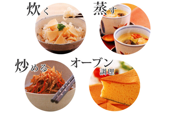 ゆでる・焼く・煮る・炊く・揚げる・蒸す・炒める、さらにお鍋で焼きムラのないケーキを焼くことも出来るので一台で色々な調理法を楽しめます。全面多層構造の熱まわりの良さで、ふっくら美味しくご飯も炊けます。