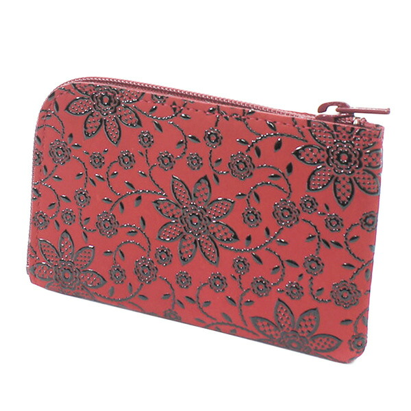 印伝 甲州印伝 印傳屋 上原勇七 財布 小銭入れ 1001 クレマチス 赤地×黒漆 鹿革 本革 レザー 花柄 ブランド 冬ギフト バレンタイン 贈り物 YM02