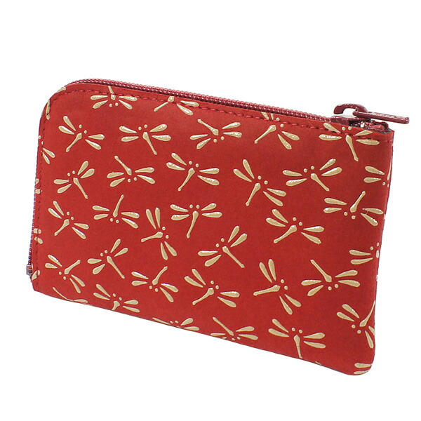 印伝 甲州印伝 印傳屋 上原勇七 財布 小銭入れ 1001 とんぼ 赤地×白漆 鹿革 本革 レザー 和柄 ブランド 冬ギフト バレンタイン 贈り物 YM02