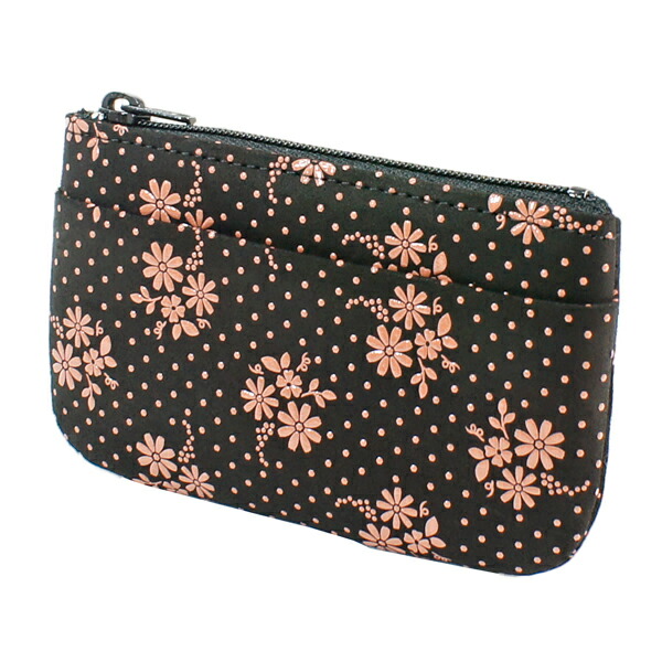 財布 小銭入れ 甲州印伝 印傳屋 上原勇七 1002 コスモス 秋桜 黒地×ピンク漆 鹿革 本革 レザー 花柄 ブランド 冬ギフト バレンタイン 贈り物 YM02