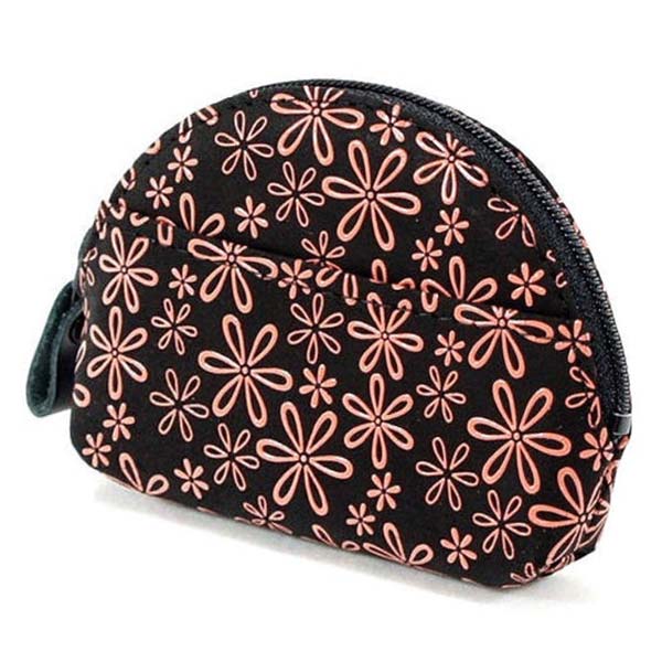 印伝 甲州印伝 印傳屋 上原勇七 財布 小銭入れ 1004 雪割草 黒地×ピンク漆 鹿革 本革 レザー 花柄 ブランド 冬ギフト バレンタイン 贈り物 YM02
