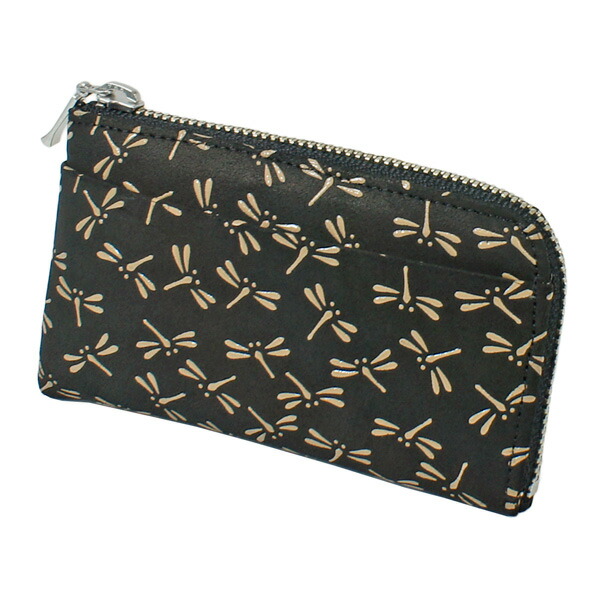 印伝 甲州印伝 印傳屋 上原勇七 財布 小銭入れ 1005 とんぼ 黒地×白漆 鹿革 本革 レザー 和柄 ブランド 冬ギフト バレンタイン 贈り物 YM02