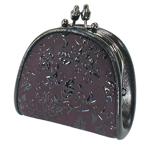 印伝 甲州印伝 印傳屋 上原勇七 財布 がまぐち 小銭入れ 1105 花唐草 紫地×黒漆 鹿革 本革 レザー 和柄 ブランド 冬ギフト バレンタイン 贈り物 YM01