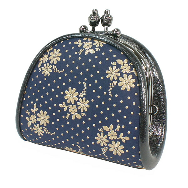 印伝 甲州印伝 印傳屋 上原勇七 財布 がまぐち 小銭入れ 1105 コスモス 秋桜 紺地×白漆 鹿革 本革 レザー 花柄 ブランド 冬ギフト バレンタイン 贈り物 YM01