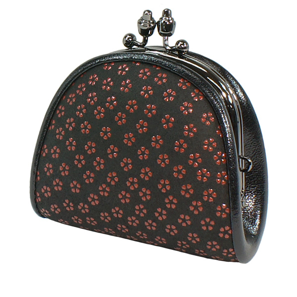 印伝 甲州印伝 印傳屋 上原勇七 財布 がまぐち 小銭入れ 1105 小桜 黒地×赤漆 鹿革 本革 レザー 和柄 ブランド 冬ギフト バレンタイン 贈り物 YM01