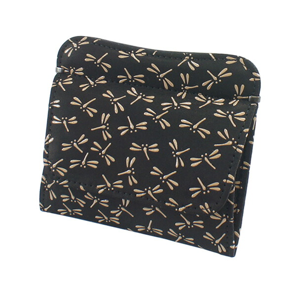 印伝 甲州印伝 印傳屋 上原勇七 財布 小銭入れ 1208 とんぼ 黒地×白漆 鹿革 本革 レザー 薄い スリム 和柄 ブランド 冬ギフト バレンタイン 贈り物 YM01