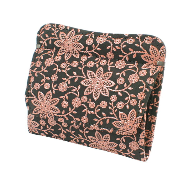 印伝 甲州印伝 印傳屋 上原勇七 財布 小銭入れ 1208 クレマチス 黒地×ピンク漆 鹿革 本革 レザー 薄い スリム 花柄 ブランド 冬ギフト バレンタイン 贈り物 YM01