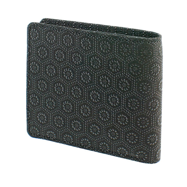 印伝 甲州印伝 印傳屋 上原勇七 財布 二つ折り財布 2006 亀甲 黒地×黒漆 鹿革 本革 レザー 和柄 ブランド 冬ギフト バレンタイン 贈り物 YM01