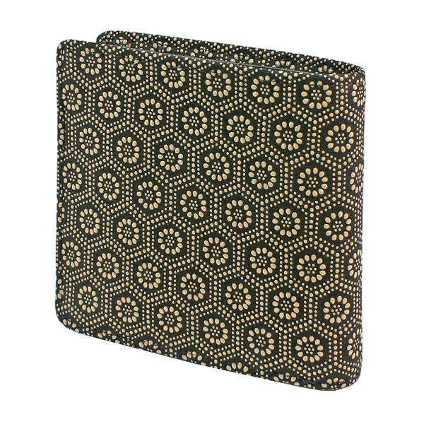 印伝 甲州印伝 印傳屋 上原勇七 財布 二つ折り財布 2008 亀甲 黒地×白漆 鹿革 本革 レザー 和柄 ブランド 冬物 冬ギフト クリスマス 贈り物 YM01