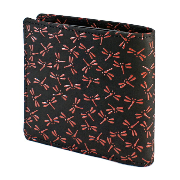印伝 甲州印伝 印傳屋 上原勇七 財布 二つ折り財布 2009 とんぼ 黒地×赤漆 鹿革 本革 レザー キャッシュレス 和柄 ブランド 冬ギフト バレンタイン 贈り物 YM01
