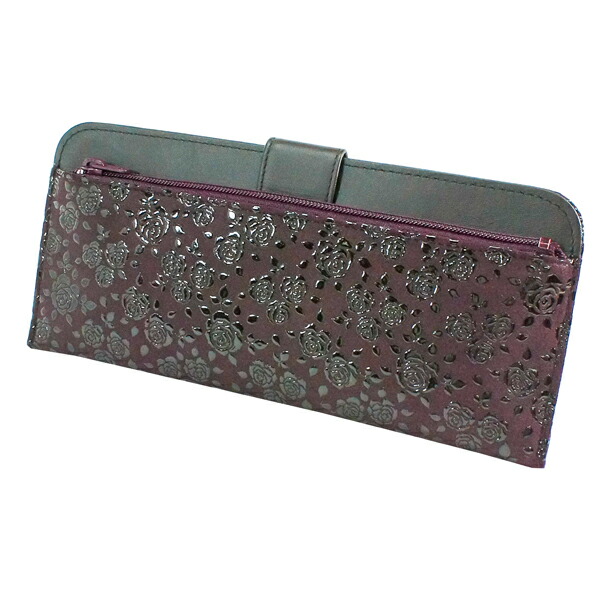印伝 甲州印伝 印傳屋 上原勇七 財布 長財布 2107 ローズ小 紫地×黒漆 鹿革 本革 レザー 薄い スリム 花柄 ブランド 冬ギフト 縁起 春財布 贈り物 YM01