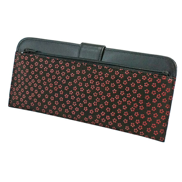 印伝 甲州印伝 印傳屋 上原勇七 財布 長財布 2107 小桜 黒地×赤漆 鹿革 本革 レザー 薄い スリム 和柄 ブランド 冬ギフト 縁起 春財布 贈り物 YM01