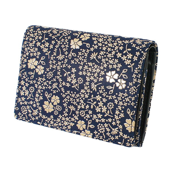 印伝 甲州印伝 印傳屋 上原勇七 財布 二つ折り財布 2205 アメリカンブルー 紺地×白漆 鹿革 本革 レザー 花柄 ブランド 冬ギフト バレンタイン 贈り物 YM01