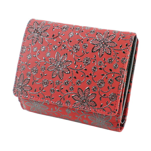 印伝 甲州印伝 印傳屋 上原勇七 財布 二つ折り財布 2215 クレマチス 赤地×黒漆 鹿革 本革 レザー 花柄 ブランド 冬ギフト バレンタイン 贈り物 YM02