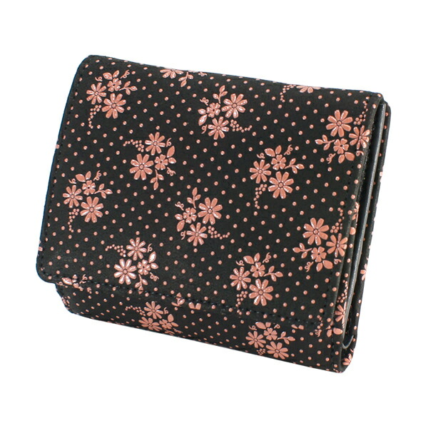 印伝 甲州印伝 印傳屋 上原勇七 財布 二つ折り財布 2215 コスモス 秋桜 黒地×ピンク漆 鹿革 本革 レザー 花柄 ブランド 冬ギフト バレンタイン 贈り物 YM02