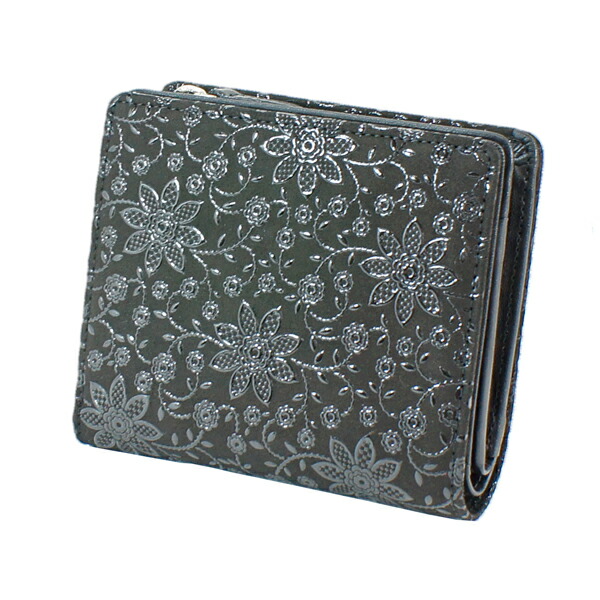 印伝 甲州印伝 印傳屋 上原勇七 財布 二つ折り財布 2217 クレマチス 黒地×黒漆 鹿革 本革 レザー 花柄 ブランド 冬ギフト バレンタイン 贈り物 YM01